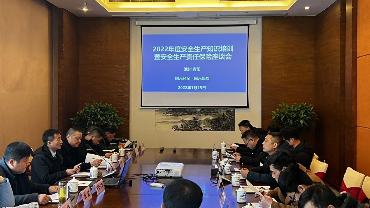 池州分公司組織青陽(yáng)縣2022年度安全生產(chǎn)知識(shí)培訓(xùn)暨安全生產(chǎn)責(zé)任保險(xiǎn)座談會(huì) 全面推進(jìn)安責(zé)險(xiǎn)制度
